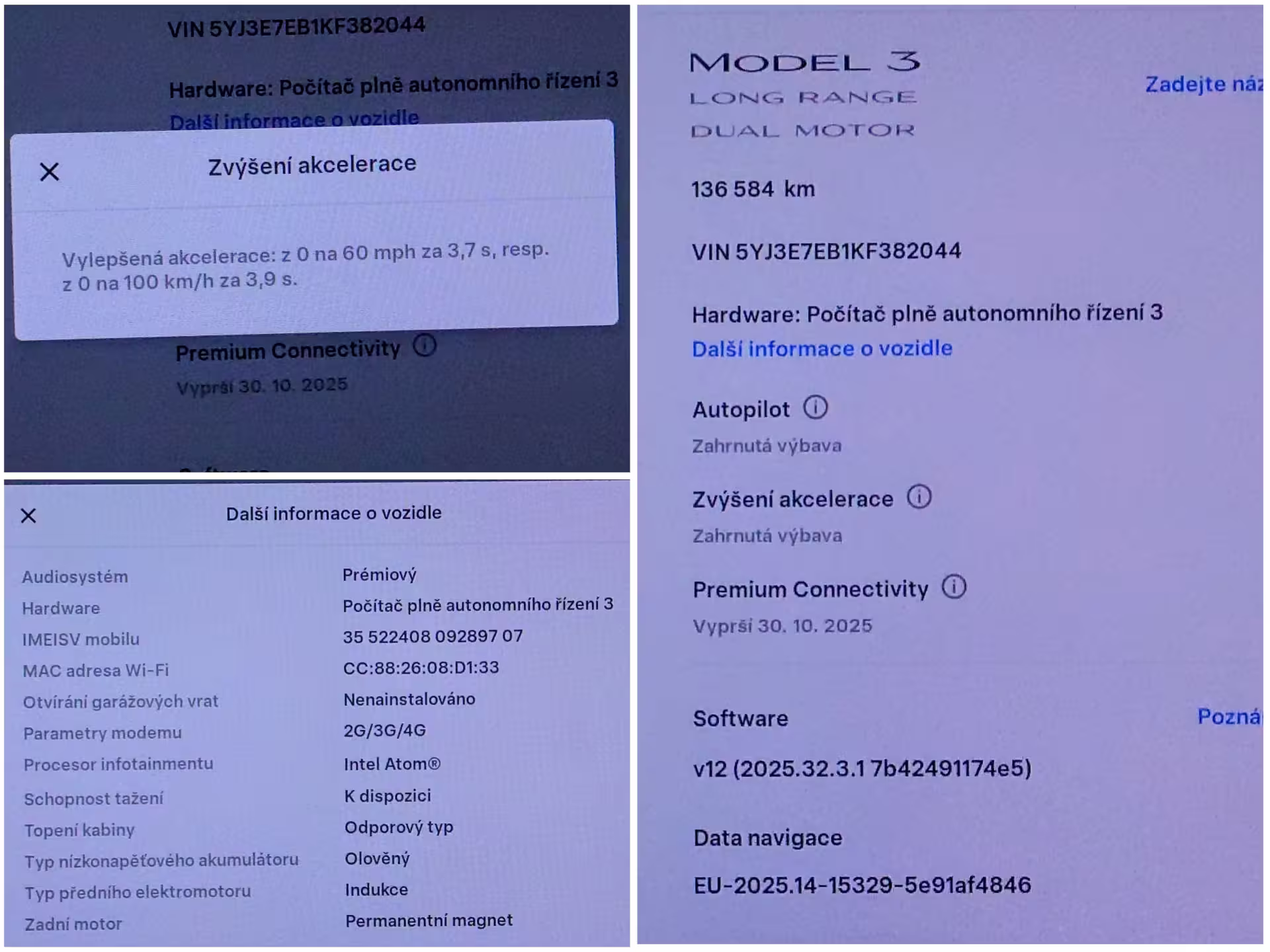 Tesla Model 3 Dual Motor Long Range 350 kW SOH 92,4 %, baterie 79 kWh, dovoz: Německo, VIN: 5YJ3E7EB1KF382044, elektro, do provozu: 24.9.2019, najeto: 136584 km, pohon kol: 4x4, automatická převodovka, STK do: 10/2026, WLTP 560km, klimatizace, procesor INTEL ATOM, parkovací kamera, tažné zařízení. Záruka na Akumulátor a hnací ústrojí 8 let nebo po ujetí 192.000 km (podle toho, co nastane dříve).*MOŽNOST VYKOUPENÍ VAŠEHO STARÉHO VOZU PROTIÚČTEM* *MOŽNOST VÝHODNÉHO FINANCOVÁNÍ už bez nulové akontace* Pro nezávaznou kalkulaci nás neváhejte kontaktovat. Nutno vždy volat předem! Prohlídky možné i mimo pracovní dobu tel. 732710796 Mates auto