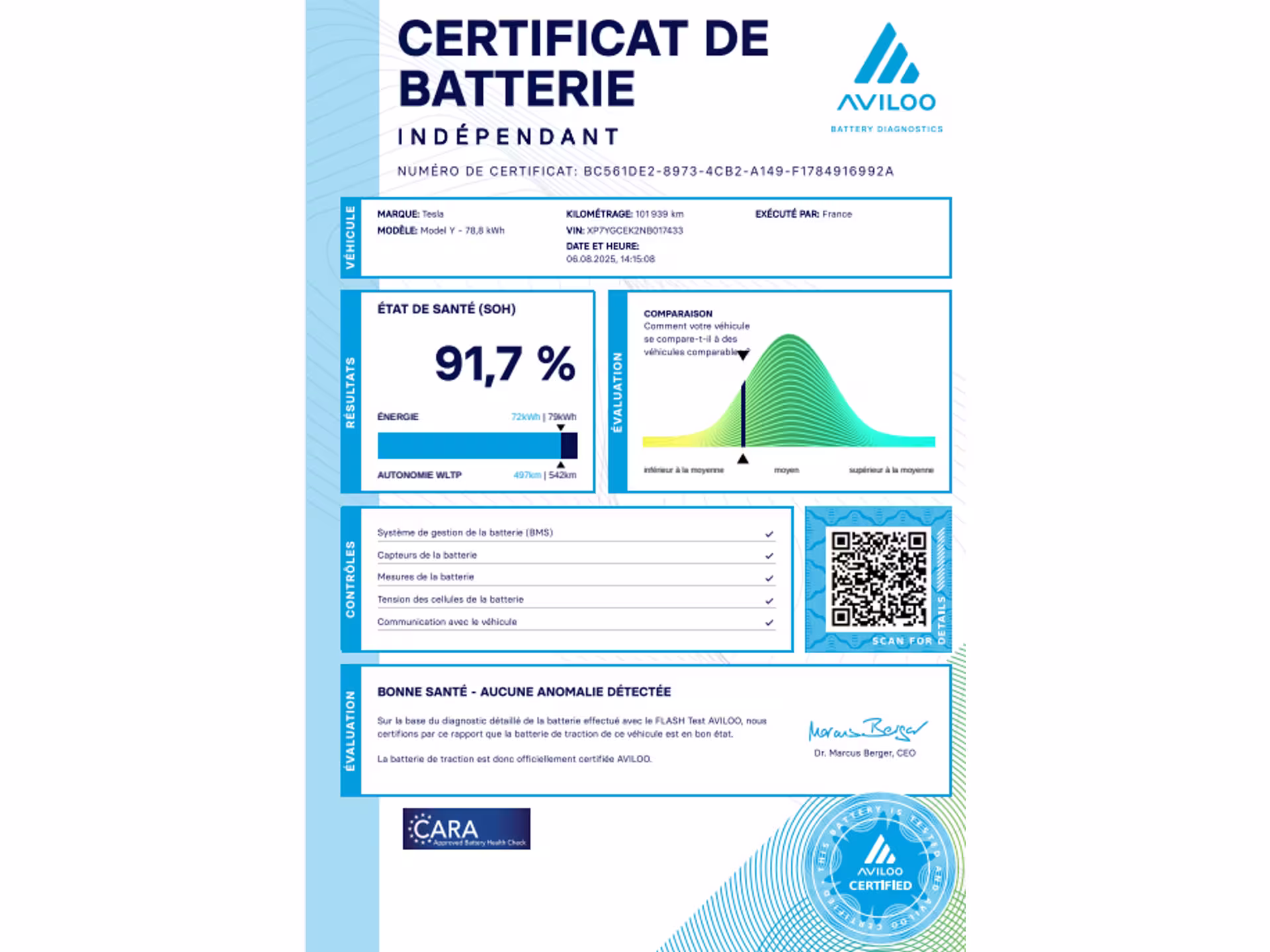 Tesla Model Y Long Range 378kW - BERLÍN SOH 91,7% (ODPOČET DPH) - cena uvedena vč. DPH, baterie 78,8 kWh - XP7YGCEK2NB017433, dovoz: EU, elektro, do provozu: 17.8.2022, najeto: 101963 km, pohon kol: 4x4, automatická převodovka, STK do: 10/2027, vyhřívaná přední i zadní sedadla, vyhřívaný volant, parkovací kamera, procesor AMD RYZEN, tepelné čerpadlo, WLTP 560 km. Záruka na Akumulátor a hnací ústrojí 8 let nebo po ujetí 192.000 km (podle toho, co nastane dříve). *MOŽNOST VYKOUPENÍ VAŠEHO STARÉHO VOZU PROTIÚČTEM* *MOŽNOST VÝHODNÉHO FINANCOVÁNÍ už bez nulové akontace* Pro nezávaznou kalkulaci nás neváhejte kontaktovat. Nutno vždy volat předem! Prohlídky možné i mimo pracovní dobu tel. 732710796 Mates auto