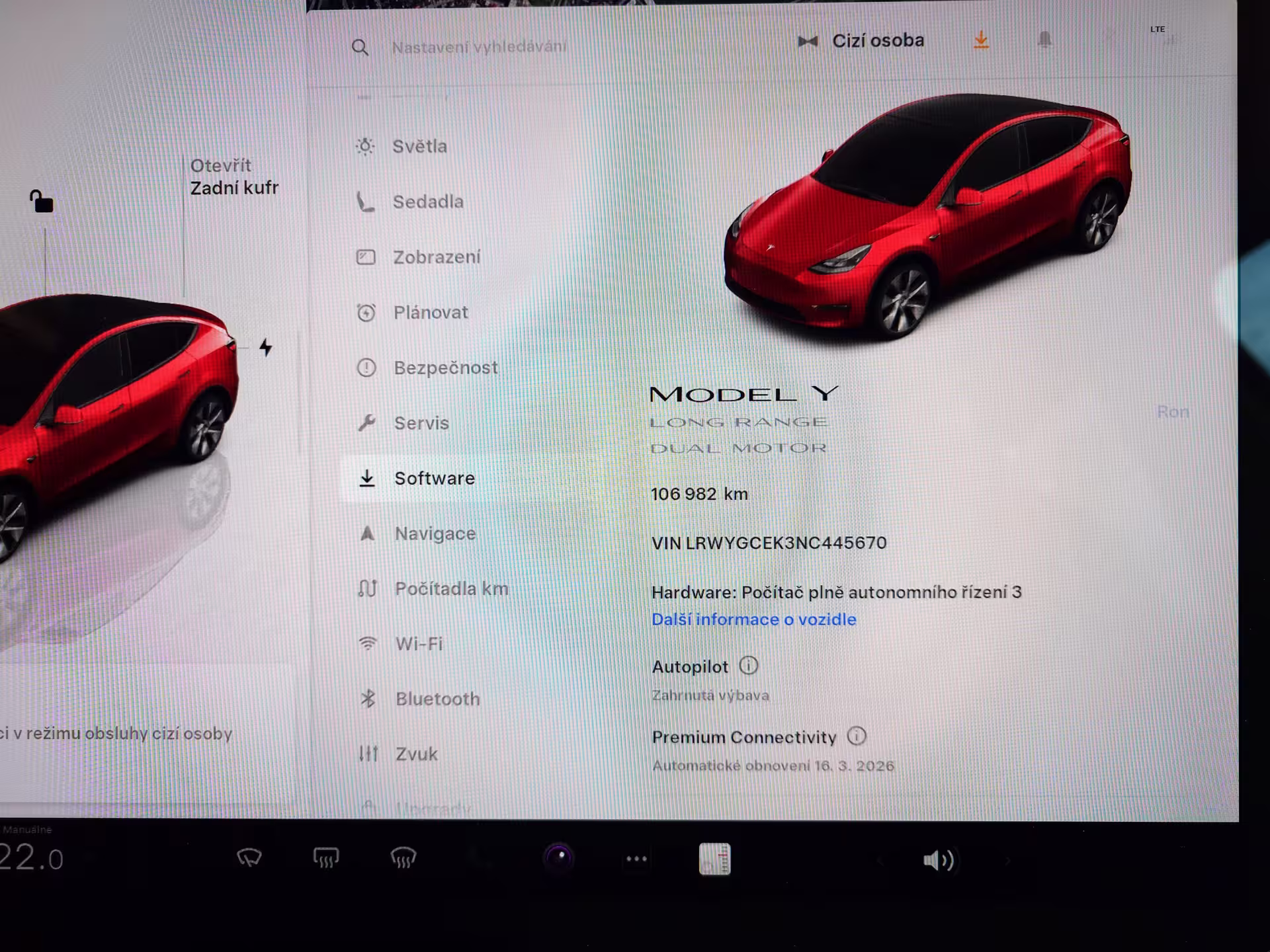 Tesla Model Y Long Range Dual Motor 378 kW SOH 91,5% (ODPOČET DPH) - cena uvedena vč. DPH, baterie 78.8kWh - LRWYGCEK3NC445670, přihlášeno v ČR, elektro, do provozu: 22.9.2022, najeto: 106982 km, pohon kol: 4x4, automatická převodovka, STK do: 2/2028, vyhřívaná přední i zadní sedadla, vyhřívaný volant, parkovací kamera, procesor AMD RYZEN, tepelné čerpadlo, MATRIX SVĚTLOMETY, TAŽNÉ ZAŘÍZENÍ, WLTP 560 km. Záruka na Akumulátor a hnací ústrojí 8 let nebo po ujetí 192.000 km (podle toho, co nastane dříve). *MOŽNOST VYKOUPENÍ VAŠEHO STARÉHO VOZU PROTIÚČTEM* *MOŽNOST VÝHODNÉHO FINANCOVÁNÍ už bez nulové akontace* Pro nezávaznou kalkulaci nás neváhejte kontaktovat. Nutno vždy volat předem! Prohlídky možné i mimo pracovní dobu tel. 732710796 Mates auto. Nejedná se o návrh na uzavření smlouvy (nabídku) dle § 1731 zákona č. 89/2012 Sb., občanský zákoník, ale o nezávaznou nabídku.
